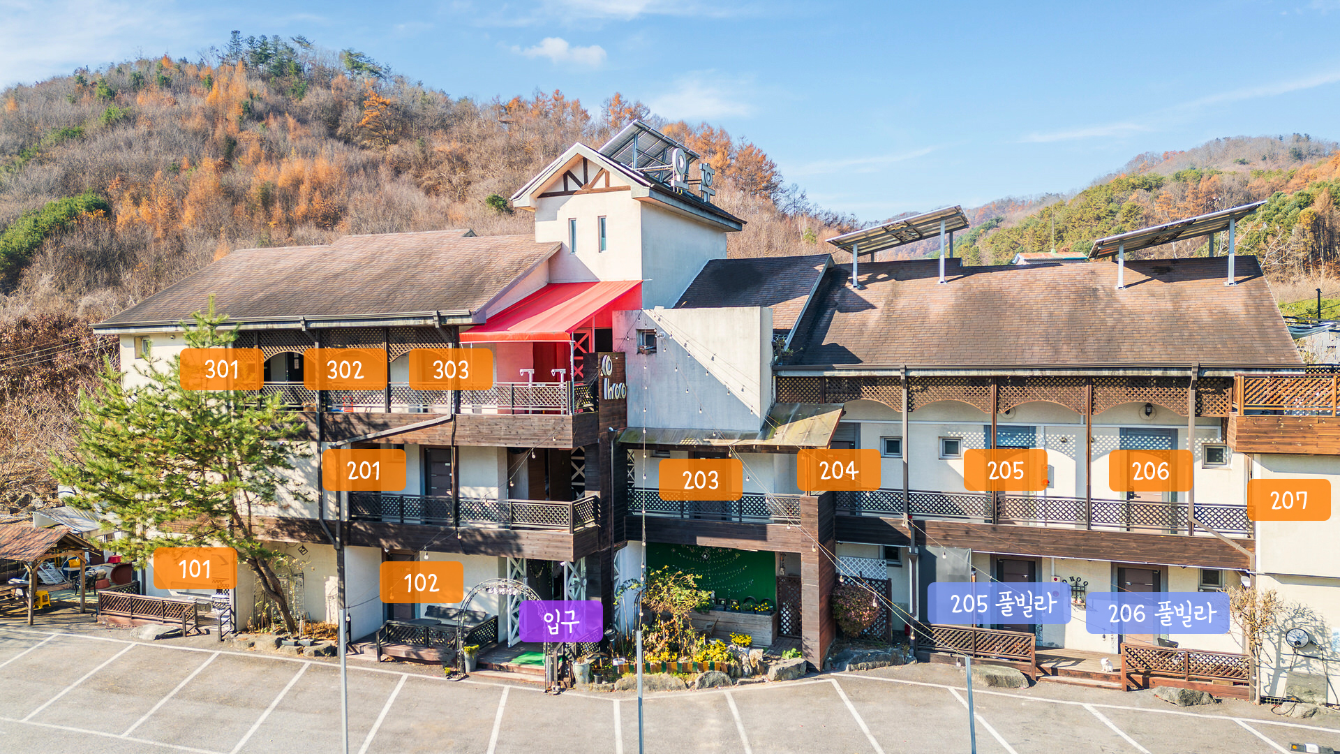 강촌 오후 풀빌라 펜션 배치도 안내입니다.